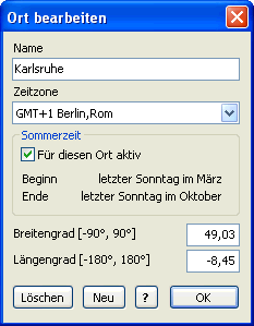 eingestellten Datum. Die Zeit entspricht der am ausgewählten Ort aktuellen
